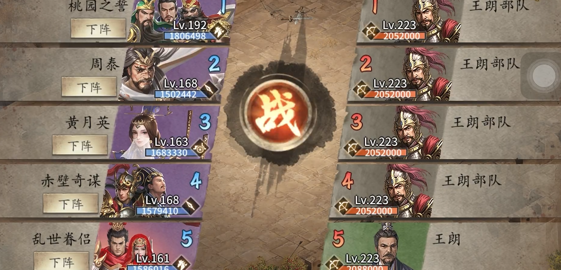 攻城掠地223王朗副本的核心难点在于武将搭配与战术细节的精准执行。推荐阵容为司马懿、关羽、黄月英、曹操和周泰,其中司马懿需携带火车驱虎套装并搭配黄甲黄杯,主要负责反制敌方第一将的战法并削弱其前四排兵力。黄月英作为主力输出,需装备二车和灵龟紫甲,利用被动溅射效果对敌方后排造成额外伤害。曹操的固若金汤技能必须精准覆盖周泰,确保其在残局阶段的生存能力。周泰则需携带三车和霸下套装,用于最终收割残血敌人。
