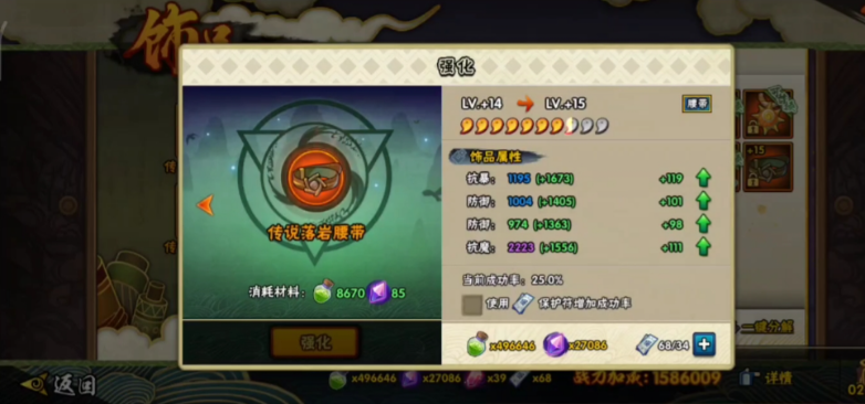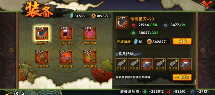 装备系统是提升战力的核心要素之一。装备分为武器、护额、忍者服、护手、忍者裤和忍者靴六个部位,每个部位提供不同的属性加成。根据装备升级顺序的测试数据,武器和护额对攻击力的提升最为显著,应优先强化这两件装备。武器的基础攻击加成最高,护额次之但防御属性更优,这两件装备强化到橙色品质后,再考虑其他部位的升级。