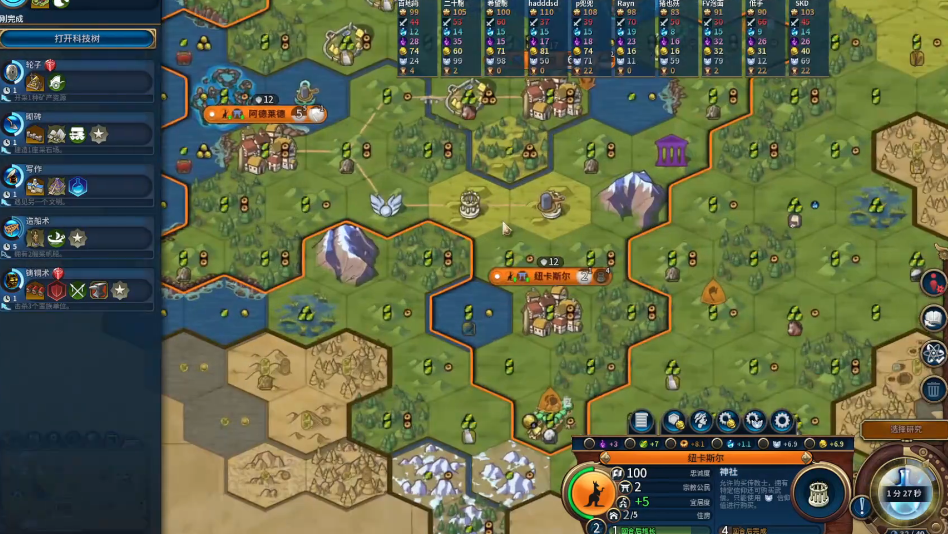 中期发展时要注意优先研究能提升海洋产出的科技和政策。比如批量生产科技解锁的威尼斯军械库奇观,能让你造一艘海军送一艘,超级划算。政策卡里记得挂上海军开发相关的卡片,比如海军传统能加速海军单位生产。如果运气好成为城邦奥克兰的宗主,所有浅海单元格都会白送生产力,这对依赖海洋的城市简直是天降福利。