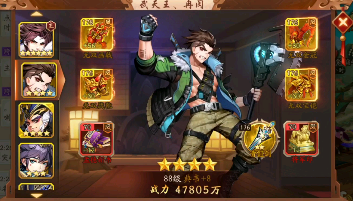 对于资源有限的平民玩家,可优先培养红将过渡,重点提升夏侯惇的星级和装备。金将典韦成型后可作为主力替换夏侯惇,配合郭嘉的全体减怒效果提升阵容上限。在培养顺序上,建议典韦>夏侯惇>甄姬的优先级分配资源,确保核心武将的快速成长。神兵选择方面,除手戟和古锭刀外,墨羽扇的持续毒伤效果也能与魏国的消耗战术形成良好配合。