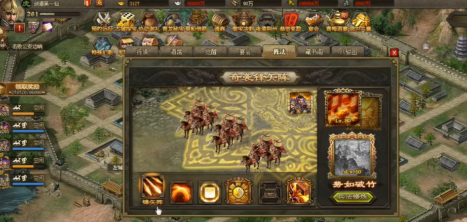 开启阵法需要将等级提升到210级,并且打下对应的副本才能解锁阵法科技。达到条件后会出现三种阵法选择:锋矢阵、雁行阵和方圆阵。不过初始状态下每个阵法只开放三个位置,想要全部开启需要消耗金币,每个阵法支付150金币,三个阵法总共需要450金币。如果不想花费太多金币,可以留意游戏内的年终庆典或消费送礼活动,在这些时候开启阵法还能额外获得资源奖励,既提升战力又节省开支。