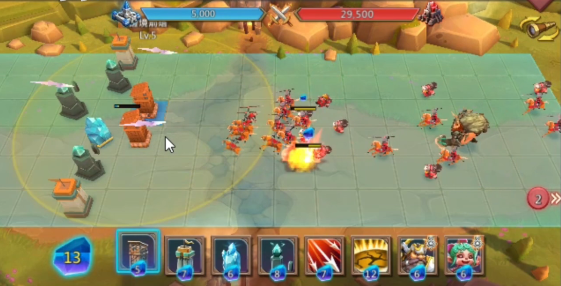 先在后场放魔像和攻击塔稳住阵脚。等敌人的兵线压过来时,优先用技能清理炮车,避免它们对咱们的防御造成太大压力。清完兵线后再慢慢推进,记得在前沿补防御塔和炮车,一步步蚕食对方的阵地。如果发现对方的英雄比较难缠,可以多放几个克制英雄的步兵,配合图腾的远程输出快速解决他们。