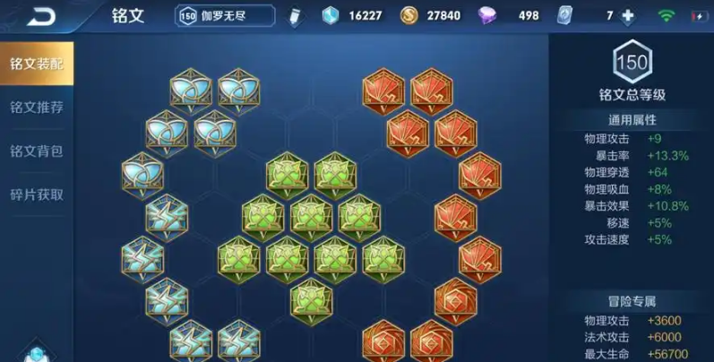 铭文搭配上,通常建议红色选择祸源和无双的组合,例如7个祸源和3个无双,这样能平衡暴击率和暴击效果,蓝色铭文搭配狩猎和夺萃,狩猎增加移速和攻速,夺萃提供物理吸血,绿色铭文则是鹰眼,提供物理攻击和穿透,这样一套铭文能让伽罗在前期对线时就有不错的压制力,清兵和消耗都能更有效率。