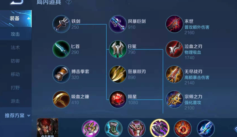 出装思路上会略有不同。由于没有打野刀,出门装可以选择铁剑或者直接做抗伤尖刺铠甲的小件。第一件大装备通常也是抵抗之靴,之后可以优先做出反伤刺甲来增加线上对抗能力。随后补上暗影战斧和宗师之力来保证伤害。边路典韦更注重发育和带线,在装备成型后,同样拥有极强的单挑和切后排能力。最后一件装备可以根据局势灵活选择,比如贤者的庇护来获得第二条命,或者名刀·司命来规避致命的集火伤害,争取反杀的机会。