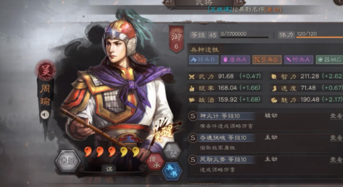 在选择拆解哪位武将时,玩家们得好好盘算一下成本问题,因为周瑜作为高智力武将,他的自带战法神火计与风助火势有很好的联动效果,但周瑜的获取难度较大,资源有限的玩家可以考虑优先拆解黄盖。黄盖虽然是三星武将,但传承成本低,更适合大多数玩家的资源状况。周瑜和黄盖都属于比较稀有的卡牌,建议通过招募、参与游戏活动或者赛季奖励来慢慢积累这些武将,等到有多余的再拆,避免浪费珍贵的武将资源,尤其是一些核心阵容可能还需要他们发挥作用。