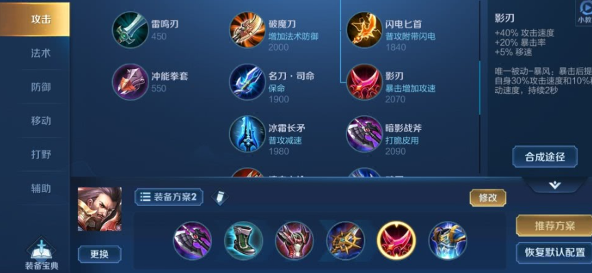 出装方面,曹操作为边路战士,思路是攻守兼备,在保证一定坦度的前提下追求高额输出。鞋子几乎固定选择抵抗之靴,其提供的韧性加成能显著减少被控制的时间,对于需要进场贴脸输出的曹操来说生存能力大幅提升。核心输出装备首选暗影战斧,它提供的物理攻击、冷却缩减和物理穿透完美契合曹操的需求,是前中期压制力的来源。随后补出反伤刺甲来增强物理防御,并能反弹伤害,对抗敌方射手和刺客时效果显著。接下来的宗师之力是爆发伤害的关键,其被动强击效果能与曹操技能后的普攻完美配合。后期装备通常选择破军来大幅提升收割残血的能力。最后一件装备则根据局势灵活选择,名刀·司命用于关键时刻保命,贤者的庇护提供第二次进场机会,而不死鸟之眼则能极大强化大招的吸血效果,让你在残血时开出大招可能瞬间回满状态,真正做到能打能抗。