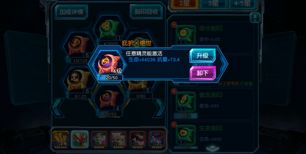 刻印这个东西,简单说就是能给精灵额外加好多属性的特殊道具,像是攻击、生命、闪避、命中这些都能提升。游戏里的刻印系统可是个核心玩法,它被划分成2星到5星不同的等级,星星越多,能给雷伊带来的属性加成也就越高越厉害。你的精灵总共能装备6个刻印槽,这些槽位会你游戏等级的提升一个一个慢慢开放出来,所以早点了解怎么玩转刻印系统对新手来说特别重要。