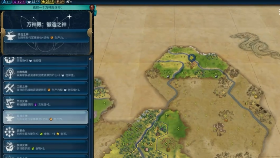 倘若你决定采取早期征服的激进策略,那么锻造之神无疑是战略层面的最优解,它能为你所属时代的远古和古典军事单位提供可观的生产力加成,从而以前所未有的速度爆兵,在游戏前期就建立起碾压性的军事优势,快速摧毁或压制邻近的竞争对手。需由于其强度公认,在较高难度的游戏中此选项通常需要尽早积累信仰来抢夺。