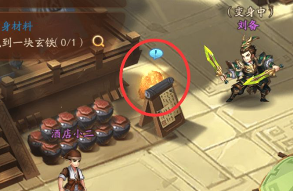 寻找玄铁是完成绝世好剑奇遇任务的关键一步。这个奇遇任务需要玩家找到玄铁和赤铜两样材料,然后交给铁匠去铸造宝剑。玄铁的具体位置其实就在游戏地图的左侧,酒店小二这个NPC所区域。你需要仔细查看酒店小二右边的那一堆酒坛子,在这些酒坛子的旁边会有一个立着的木牌子,那块闪着金光的玄铁就藏在这个牌子的后面。因为有金光特效,所以只要你走到附近仔细看,还是比较容易发现的。找到之后直接点击就能收取了。完成这个任务不仅能推进剧情,还能获得不错的奖励,是列传探索中很有趣的一部分内容。