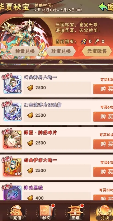 神兵商店里主要提供各种珍贵的神兵碎片和培养神兵所需的专属材料。你可以用特定的货币在这里兑换红色品质甚至更高品质的神兵碎片,集齐一定数量后就能合成完整的神兵。用于神兵升星、洗练属性的材料也时常在此出售。这里使用的货币比较特殊,通常不是游戏里通用的金币或元宝,而是一种叫做神兵令或者通过分解多余神兵获得的神兵精魄之类的专属货币。你平时获取的多余神兵碎片和道具别乱用,分解后得到的资源可能就是在这里消费的钱。商店里的商品列表会定期自动刷新,也可能会有一些限时上架的特惠物品,需要你经常关注一下。