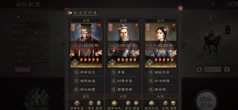 队伍构成需要从开荒阵容向更具战斗力的后期阵容转型,并完成武将的深度培养。主力开荒武将应继续通过扫荡高级土地提升等级,例如在30至40级阶段扫荡六级地是高效的练级方式。武将达到20级并完成觉醒后,将解锁第三个战法槽和装备系统,此时需为其配置更高级的A级或S级战法,并打造增加核心属性如速度、武力的装备。阵容搭配上,应摒弃纯过渡型组合,根据已获得的武将和战法,组建具备输出、治疗、控制等综合能力的队伍,兵种适性上优先选择S级和A级组合以发挥最大属性。通过武将进阶提升属性点,并根据其定位完成第三层兵书的选择,以获取额外的战斗增益。