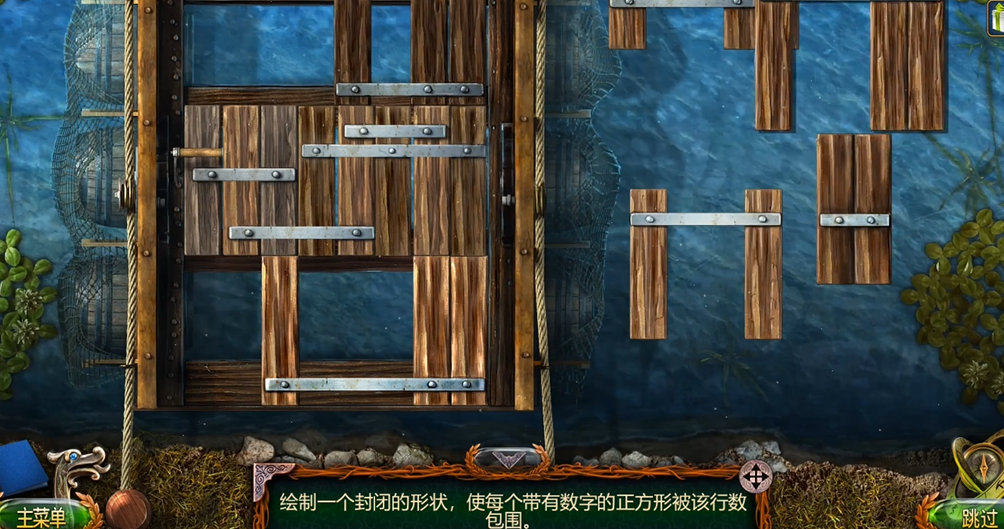 桥的拼接需要遵循特定规则,即绘制封闭形状使每个数字对应的木板被正确包围。首先将深棕色带三个点数的木板块置于第三格最左侧,再将上下各有两个点数的三块木板放在第一栏中间。H形木板块需放置于第一栏最左侧以封闭该区域。剩余三块木板中,带四个点数的置于第二栏中间,最后一块H形木板块放在第二栏最左侧即可完成拼接。此环节需注意木板点数的对应关系,避免逻辑错误导致失败。