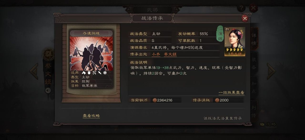 破阵摧坚和夺魂挟魄是两种最常用的减属性战法。破阵摧坚能同时降低目标的统率和智力,适合用来对付那些依赖高统率或高智力的武将,比如诸葛亮或司马懿。夺魂挟魄则更全面,可以偷取目标的武力、智力和统率,不仅能削弱对手,还能增强咱们自己的属性。这两种战法都需要一定的发动条件,所以最好搭配高速度或先手战法使用,确保能在战斗前期就发挥作用。