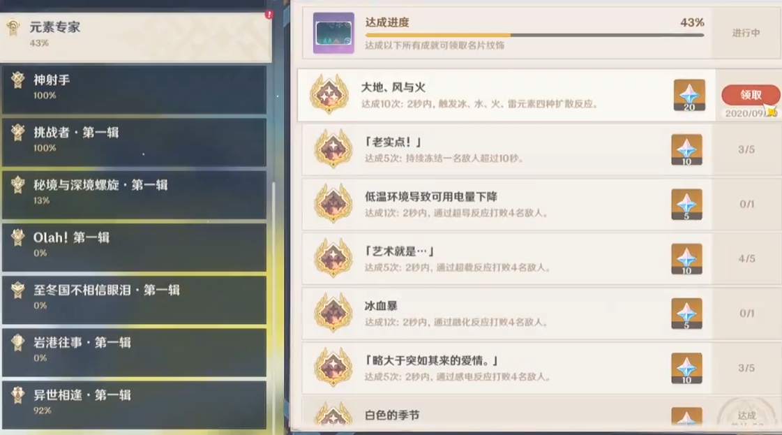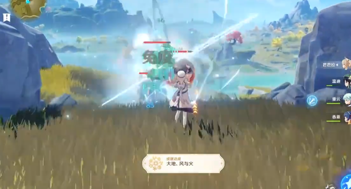 要完成大地风与火成就,核心条件是在2秒内触发冰、水、火、雷四种元素的扩散反应。由于扩散反应需要风元素参与,实际需要五种元素同时存环境。推荐前往奥藏山与轻策庄中间小岛上的限时挑战点,该挑战开启后会刷新五种不同属性的史莱姆,通过走位将火、冰、雷、水四种史莱姆聚集后,用风属性角色的元素战技触发扩散即可。