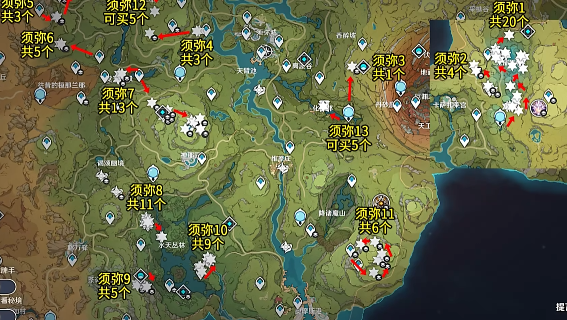 恒那兰那和觉王之殿附近也有少量树王圣体菇,但分布比较零散,适合顺路收集。善见地的蘑菇虽然密集,但位置不太显眼,得仔细找。如果想省事,可以去化城郭找NPC阿什帕齐,或者到恒那兰那找兰玛尼购买,每次限购五朵,价格是1000摩拉一个。