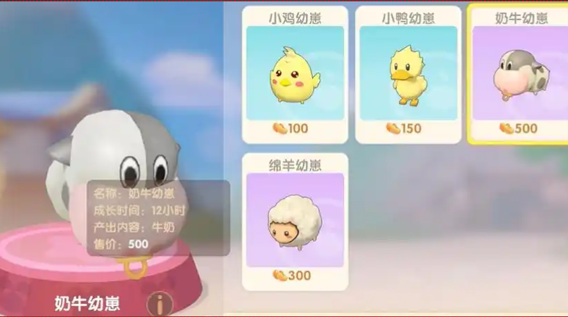 牛奶是重要的基础食材,需要通过饲养奶牛并挤奶获取。玩家需前往尤尤的牧场商店花费500摩尔豆购买奶牛幼崽,将其放置在牧场喂养至成年状态后才能产奶。成年奶牛在吃饱且显示可生产状态时,使用挤奶桶点击交互按钮即可完成挤奶操作,每头奶牛每日可挤奶三次。