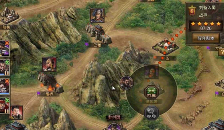 汉中是个隐藏加分项,打完能加2分钟但特别耗兵力。推荐先派个炮灰将刷7-8个影子慢慢磨,主力继续推主线。最后30秒如果差评星,立刻调头点汉中NPC,手速要快。战神难度下广汉事件能加攻击力,但装备一般的话建议放弃,专心怼主线更实在。影子数量宁可多刷也别省,每个城多留1-2个备用总没错。