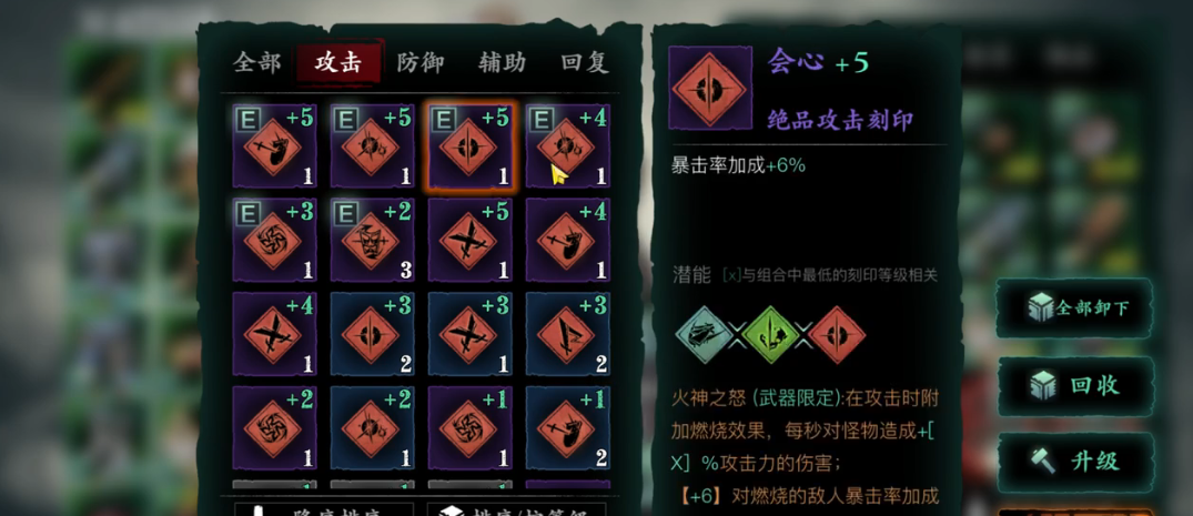 刻印重铸的核心机制是通过消耗特定材料重新随机装备的刻印槽位和颜色排列。不同品质的装备拥有不同数量的刻印槽位,高级装备通常提供更多优化空间。重铸时需注意,刻印槽位的颜色顺序直接影响潜能激活效果,必须按照特定顺序排列才能触发额外属性加成。每次重铸都会消耗重铸石等材料,这些资源主要通过日常任务、活动奖励和副本掉落获取。