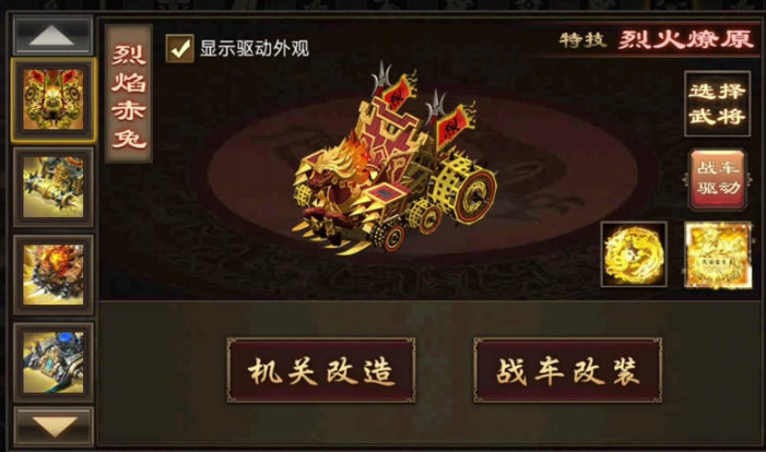战车在可是咱们攻城拔寨的好帮手,不仅能提升整体战力,还能带来各种特殊效果。战车系统分为多种驱动和零件,比如蚩尤驱动主打属性加成,冷焰先锋则有持续伤害特效。咱们可以根据自己的武将阵容来选择合适的驱动,属性增幅和特效各有优劣,关键看你怎么搭配。战车还能携带挂饰和道具,比如陨铁链和孔明锁,这些都能进一步提升战车的战斗力。