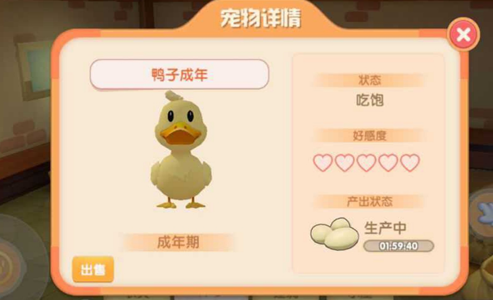 鸭子进入成年期后需使用专用工具处理产物。剃须刀用于采集鸭绒,挤奶桶用于收集鸭蛋,工具同样可在尤尤商店获取。产物可通过汤米工头处出售,或作为餐厅食材。若鸭子预产数降为零,则需出售并更换新幼崽以维持产出效率。整个养殖过程需平衡饲料成本与产物收益,避免过度投入导致亏损。初期以积累经验为主,熟悉投喂节奏与产物周期后,可逐步扩大养殖规模。建议同步饲养鸡、羊等动物以优化牧场资源分配。