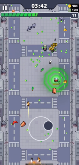 实战中需注意走位策略,避免全屏跑动导致资源分散。建议固定站位吸引怪物聚集,使炸弹和恢复道具集中生成。BOSS战阶段需保留广告复活次数,仅在最终BOSS时使用以确保收益最大化。若遇到卡关,可尝试将无人机替换为足球技能,其击退效果能有效缓解包围压力。