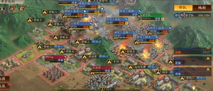 接下来咱们说说驻守时的战斗是怎么发生的,这里有个关键机制叫后来先战。假设你的盟友已经在一块地上驻守了一支部队,你也派了自己的队伍过去驻守同一块地。这时候如果有敌人来攻打,系统会优先调用最后到达的那支你的部队去迎战。这个机制挺有意思的,它意味着冲在前面的队伍不一定是第一个挨打的。大家可以利用这一点玩点策略,比如在最后时刻再派兵上去驻守,但敌人也可能猜到你的想法,所以有时候也像是一种心理上的较量。当战斗触发时,驻守部队会自动进行反击,你不需要额外操作。