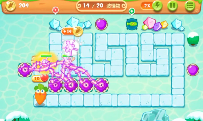 游戏进入后半段,特别是最后几波怪物来袭时,需要确保所有魔法球塔都已经达到顶级状态。如果之前有按照计划集中建设,的火力应该是溢出的。这时可以将注意力完全放在监控怪物行进线上,及时点击血量较高的怪物进行集火。本关的怪物波次和路径设计对于纯魔法球阵容来说是完全可以应对的,不需要引入其他类型的炮塔来增加操作复杂度。只要前期经济任务顺利完成,中后期稳步推进,在最后一波怪物被消灭时,你通常会发现三个额外任务都已经在不知不觉中完成了,金萝卜和水晶萝卜也就顺利到手了。