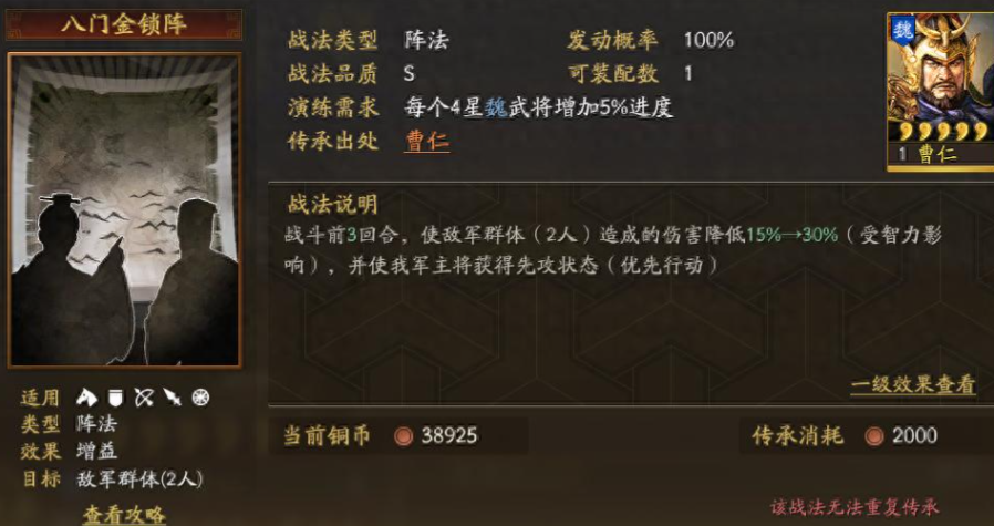 利用减伤战法如暂避其锋、八门金锁阵或御敌屏障,可以减少敌方造成的谋略和物理伤害,同时搭配控制技能如混乱、技穷或震慑,能打断对手的输出节奏,从而降低自身承受的伤害。这种组合能有效保护主力武将,确保他们在战斗中存活更久,减少不必要的兵力损失。