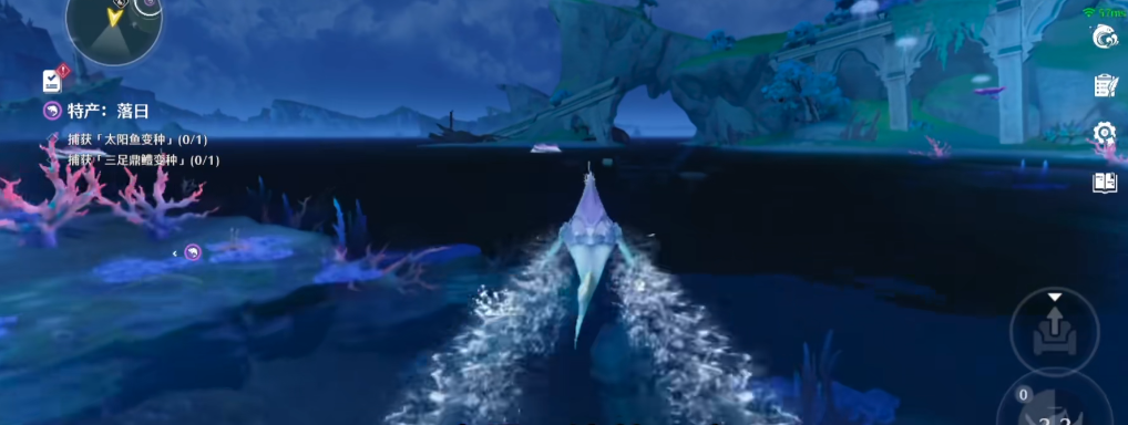 隐藏鱼王龙鲡的解锁条件最为特殊。它的传说钓鱼点位于莱耶斯遗迹群的上方,但需要先获得完整的藏宝图才能解锁。藏宝图由四卷碎片合成:第一卷通过完成活动主线任务直接获得;其余三卷则分别需要在沉静湾、舵盘村、黎乔利港三处指定的神像点位,通过供奉总计9只当当蟹来获取。集齐所有碎片后,它们会自动合成为完整的藏宝图,使用后便会解锁龙鲡的专属捕捞点。