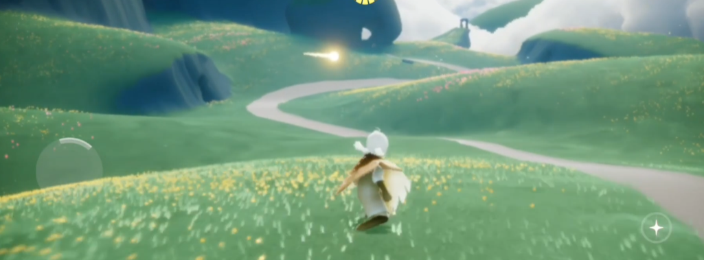 云野之光位于云野地图的第一张图蝴蝶平原的中央区域。玩家从遇境进入云野后,飞过云层到达蝴蝶平原,便能在中间的石头附近观察到一团金色的动态光点,这个光点就是需要捕捉的云野之光,由于光芒会持续移动,玩家需要预判其飞行轨迹并适时触碰才能完成任务,整个过程依赖于对环境的观察和及时反应。