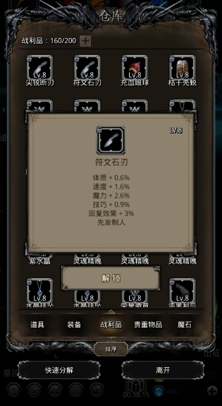 获取先发制人战利品需要玩家进行针对性的收集与刷取,这个过程往往需要投入大量的时间。一种相对明确的获取途径是前往特定的地图击败指定的怪物。充血眼球可以通过在图10击败触手怪(邪眼暴君)概率获得,而符文石刃则可能在图8的巨狼种群处掉落。除了直接掉落,游戏中还存在合成系统,玩家可以将掉落的基础材料战利品,如带有砍刀图标的物品与眼球等,在工坊中进行合成,以此有机会获得具备先发制人属性的成品战利品。