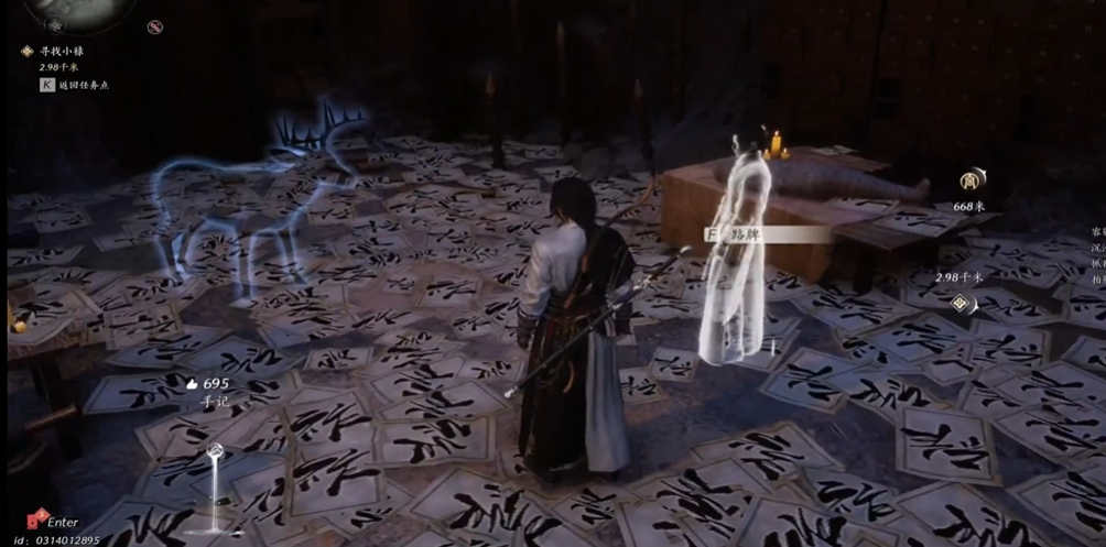 鹿头是一个关键的任务道具,它的位置其实并不隐蔽,就藏在游戏流程最初让你感到惊奇的那个房间里。你需要回到最初与那只神秘蓝鹿相遇和交互的场景,在那里你会发现周遭的环境有些特别,墙壁或地面上布满了某个男人的名字,而你要找的鹿头就静静地放置在这个区域的某个显眼位置,通常就在NPC的旁边或者一个竹制台子上。很多任务道具的设计都遵循了线索就近的原则,所以当你需要它时,第一个该检查的就是任务起始点附近的区域。