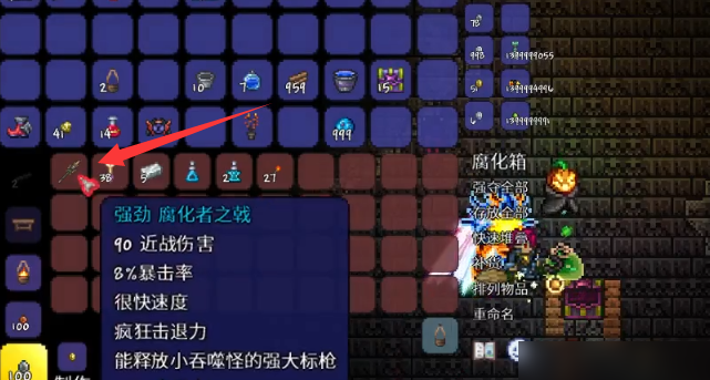 成功开启宝箱后,玩家将获得其中存放的特定物品。黄金宝箱内包含诸如妖刀村正、钴蓝盾牌等对游戏前期冒险有显著帮助的装备和道具。而各个环境宝箱则提供了接近毕业阶段的强力武器,例如神圣宝箱中的彩虹枪能发射持续的彩虹光束,腐化宝箱中的腐化灾兵可放出会分裂的小吞噬者,血腥宝箱中的吸血飞刀兼具远程攻击与生命恢复效果,冰霜宝箱中有冰霜九头龙杖,丛林宝箱内则为食人鱼枪。这些宝箱在开启后,其箱体本身可以使用镐类工具回收,用于玩家的建筑存储系统。