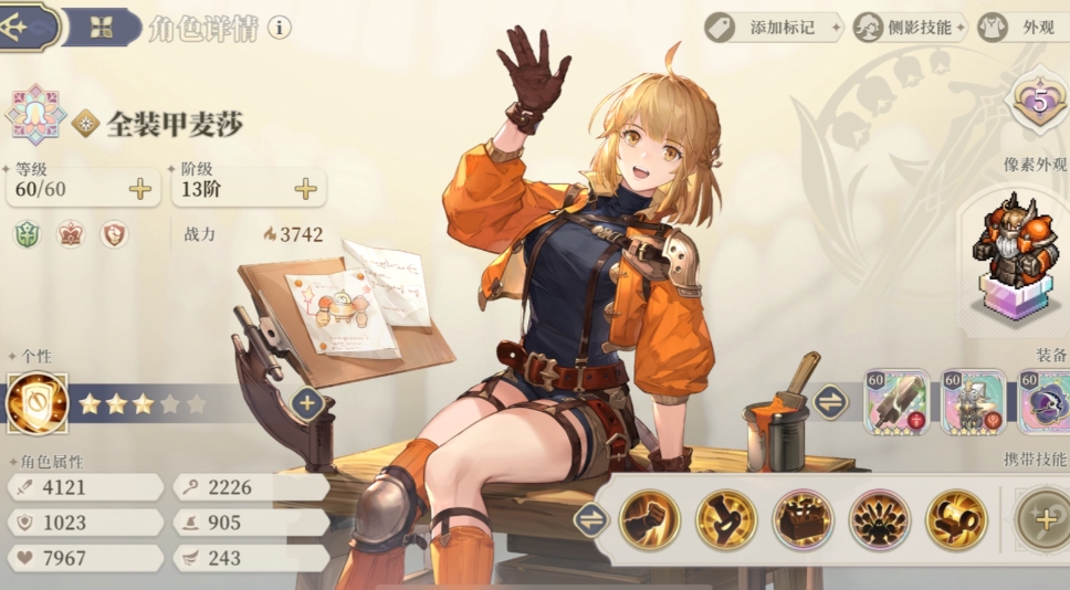 妮蒂娅的输出体系围绕黑羽之印展开,叠加印记后可触发范围爆破伤害,技能组分为直伤流与持续伤害流两种玩法,直伤流携带鸣击、告死鸟之翼、死亡宣告、箭羽联翩、黑羽蔽日,出伤速度快、覆盖范围广,适合快速清场;持续伤害流搭配寒冰击与凛冬庇护,依靠冻伤效果持续消耗敌人,生存更稳定但爆发较弱。该角色攻击面板优秀,魔攻可转化为物攻提升输出,箭羽联翩能强化普攻并追加攻击,配合黑羽蔽日的大范围效果,一回合可覆盖多名敌人,搭配追击指令与再动效果,能多次刷新印记伤害,打出高额连锁爆发,缺点是单体伤害不足,面对高防御精英与BOSS时输出乏力,需要单体队友补伤害。