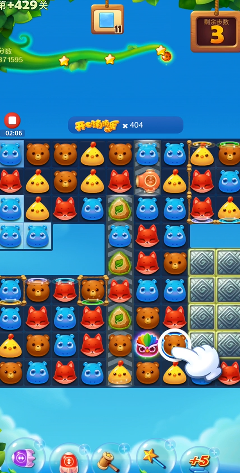 开心消消乐7011关以收集指定小动物与清除多层障碍为核心通关目标,优先破除中间牢笼与冰块封锁,高效合成并组合特效,聚焦目标元素消除,即可稳定通关。